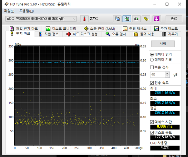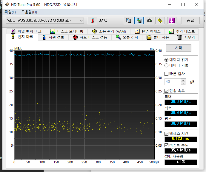 가지고 있는 WDS500G로 측정한 벤치마크 입니다.