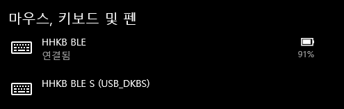 붉은색이 쳐진 부분을 선택하면 여러가지 키보드들이 나옵니다. 여기서 HHKB BLE를 선택하시면 됩니다.