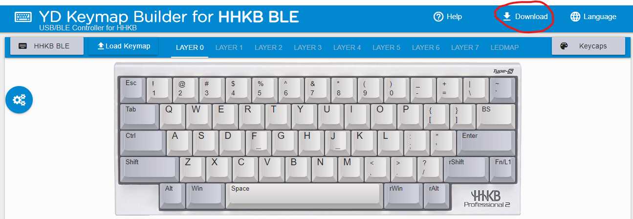 2020-12-17 추가 : 펌웨어가 "HHKB BLE"에서 "HHKB BLE S"로 변경되었습니다. http://ydkb.io 에서 키보드를 "HHKB BLE S"로 선택해야 최신 펌웨어로 변경됩니다.