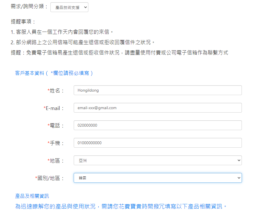 But I want to receive service in Taiwan.