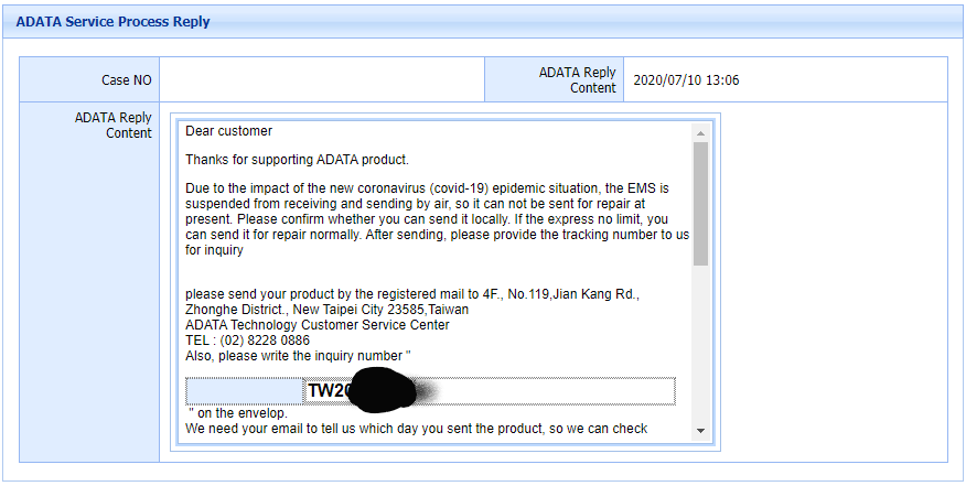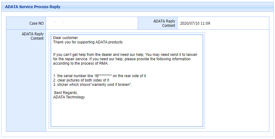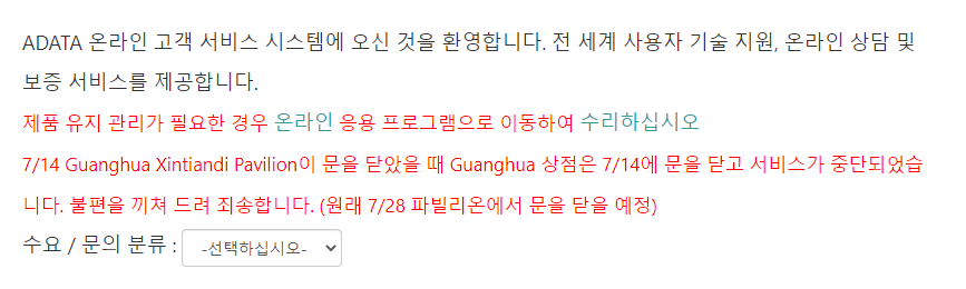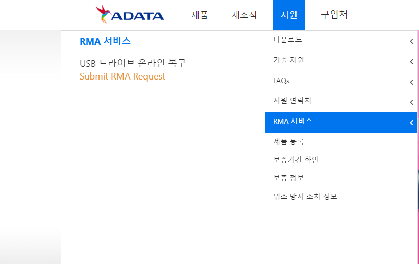 이렇게 들어가서 RMA를 신청하면 무조건 ADATA Korea로 신청되어 회신이 옵니다.