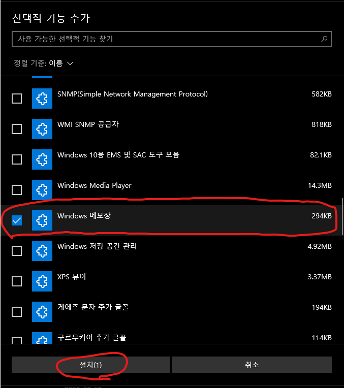 Windows10 20H2 (빌드 19042.423)에서 메모장이 없어지고 txt화일을 열지 못하는 경우가 발생하였습니다.