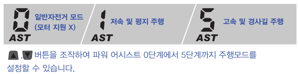 3. 파워어시스트 모드 변경 - 상향/하향 버튼을 눌러 변경합니다.