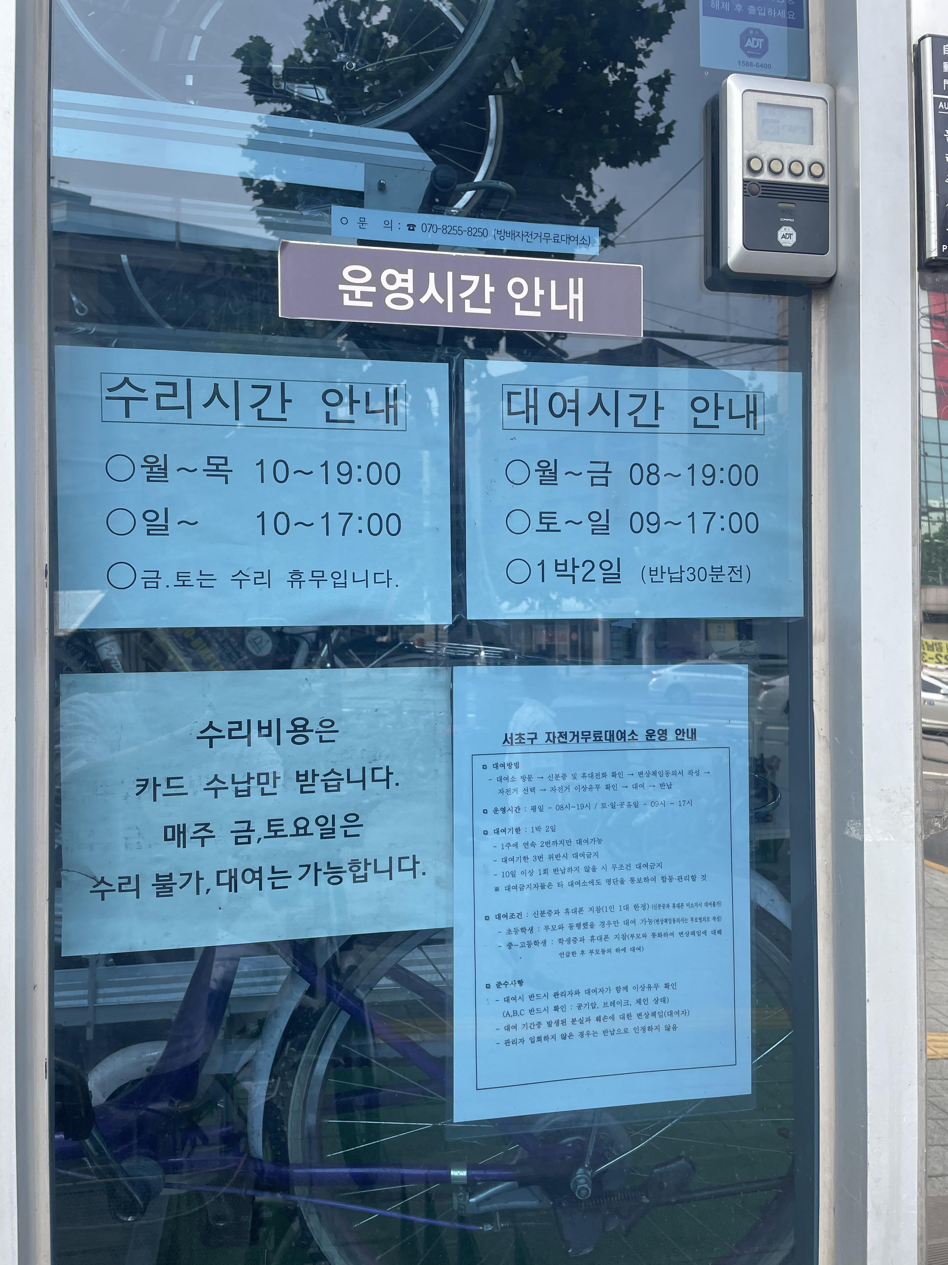 서초구에서 무료대여소 안에 자전거 서비스 센터를 운용한다고 해서 앞바퀴 펑크를 수리해 보려고 방문했습니다.