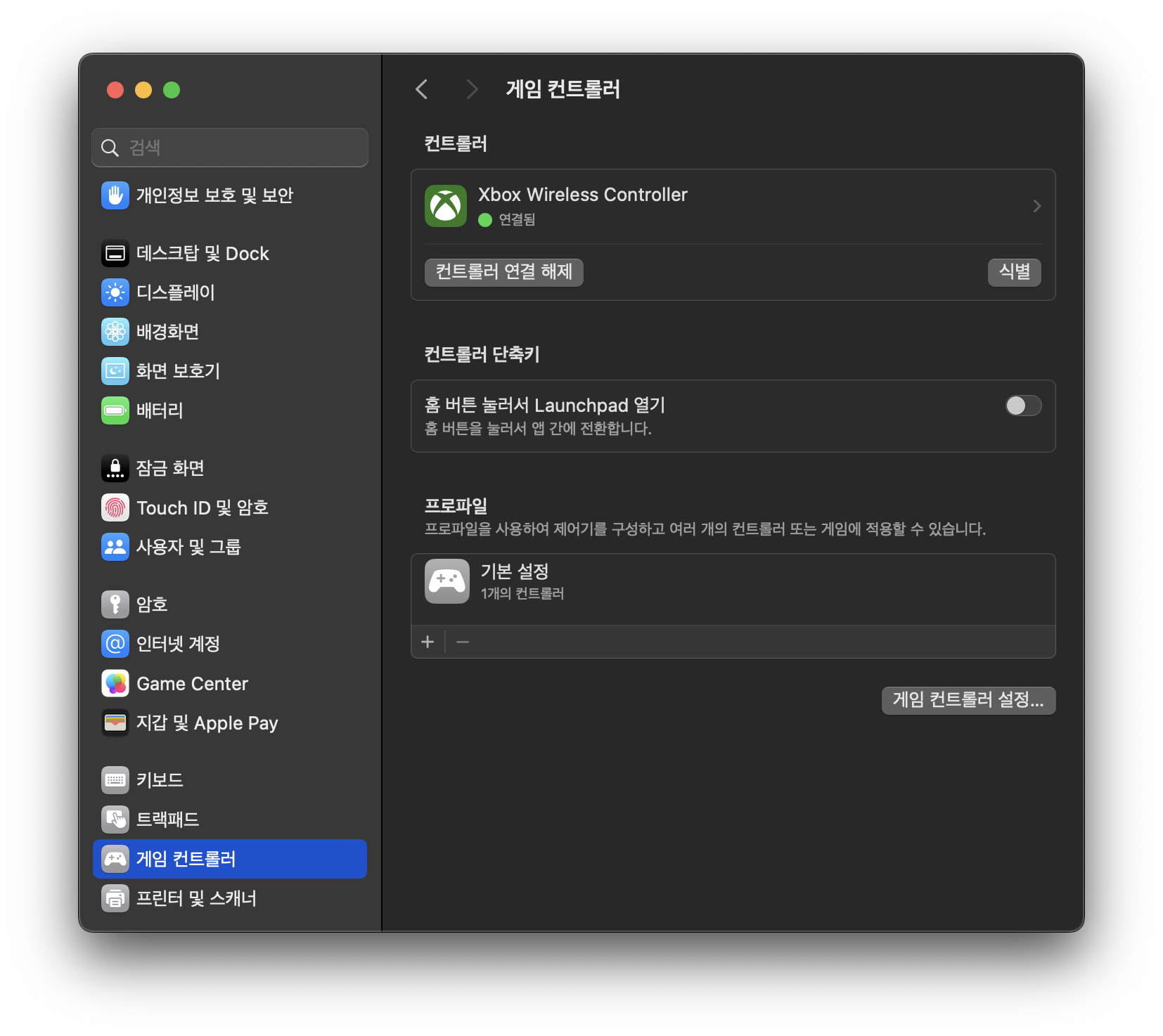 MacOS Sonoma에서 gamepad를 연결 해서 사용하는 경우 "home" 버튼을 누르면 게임상에 버튼으로 동작하는 대신 "Launchpad"를 보여주게 됩니다.