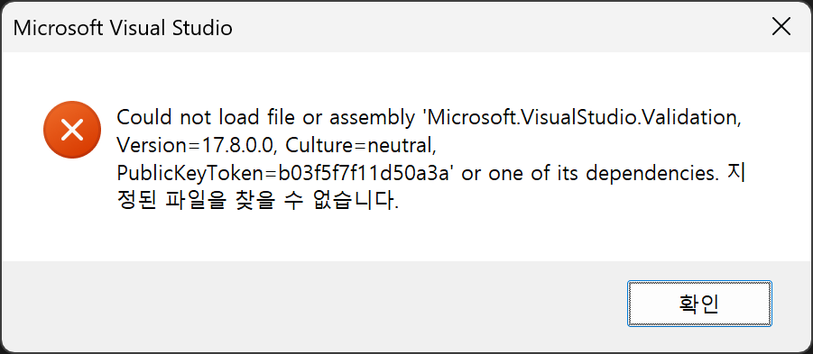 Visual Studio 2022 Professional을 사용하다 보면 "Microsoft.VisualStudio.Validation" 오류가 발생하는 경우가 있습니다.