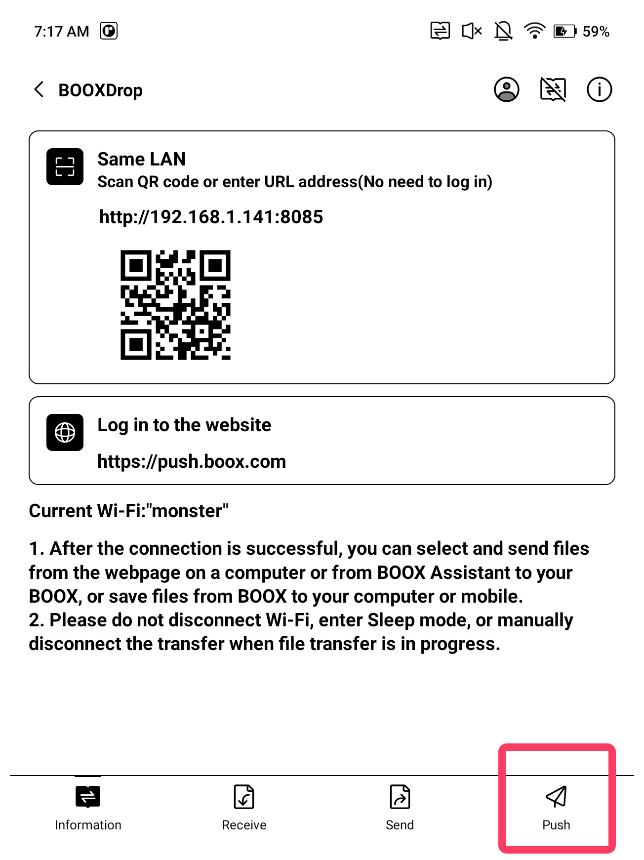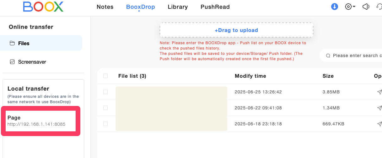 Onyx 기기에서 BOOXDrop을 실행합니다.