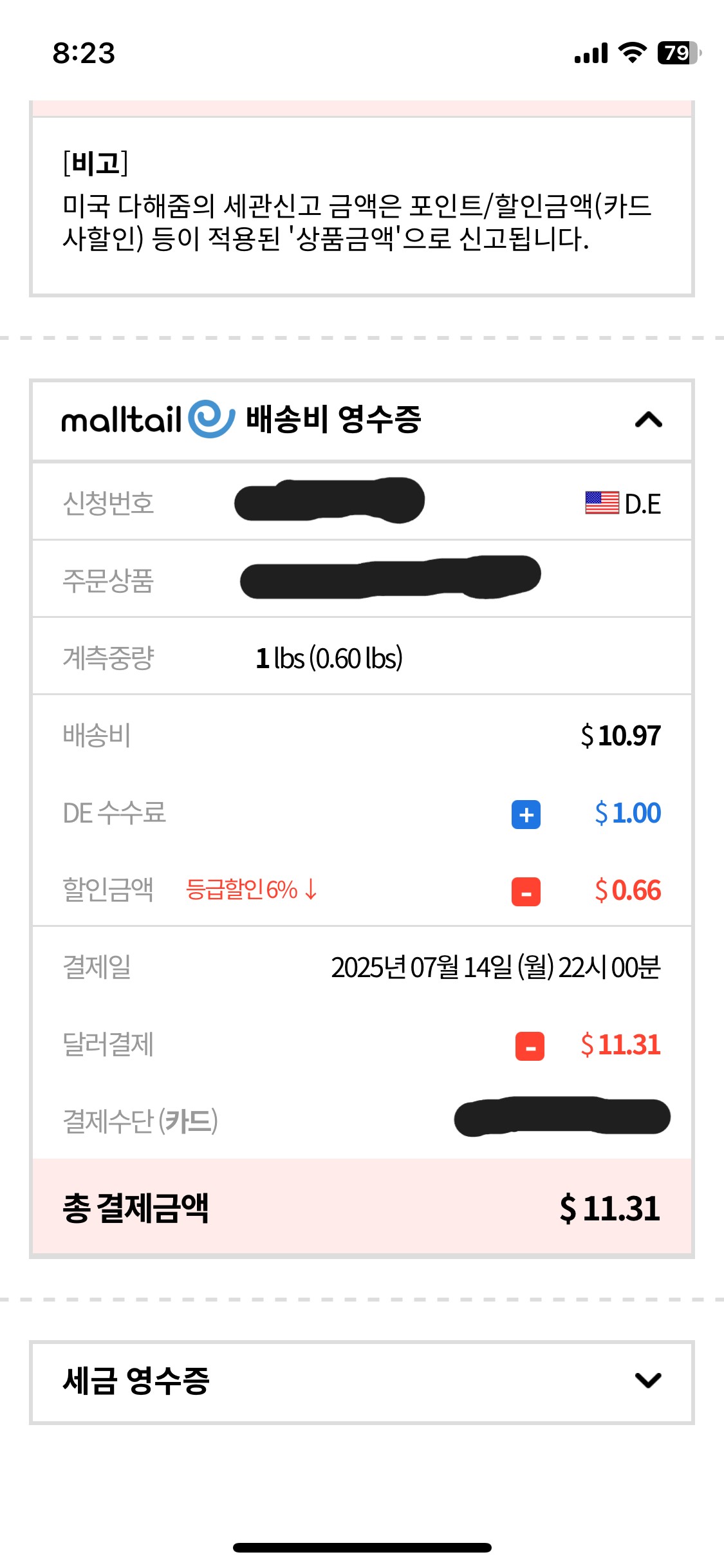 저는 추가로 붙은 $10이 배송비였거니 했습니다. 자세히 항목을 안 본 제가 실수를 한거죠.